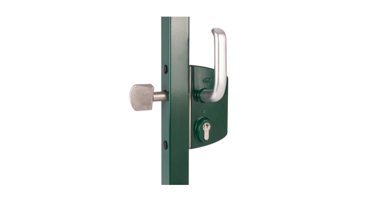 Описание товара: "Замок LSKZ 6060 U2L для откатных ворот корпус металл, с ручками из алюминия зеленый RAL 6005"