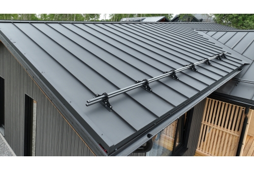 Когда на кровле присутствуют ендовы и требуется возможность выбора направления монтажа картин на скатах рекомендуем выбирать Кликфальц® Dоublе Pro