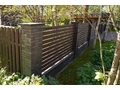 Модульный забор под «жалюзи» выглядит объемно и одновременно «легко».