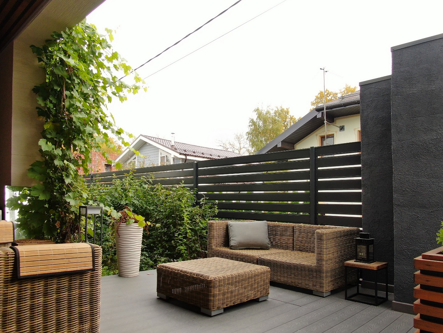 Модульный забор под «жалюзи» выглядит объемно и одновременно «легко».