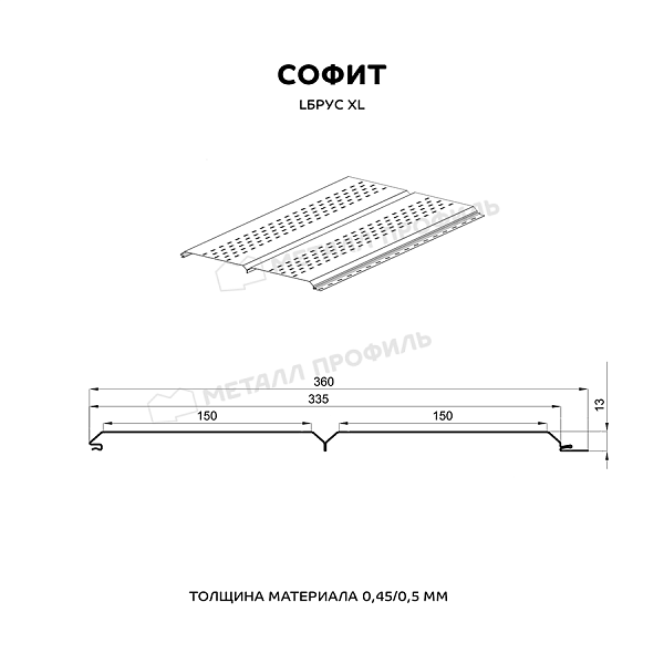 Описание товара: "Софит Металл Профиль перфор. Lбрус-XL-14х335 (PURMAN-20-Argillite-0.5)"